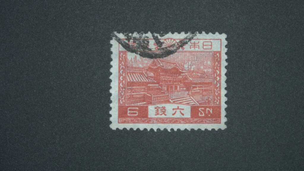 前回の記事では風景2銭切手に対して色の分類がどこまでできるか調べてみたので、今回は風景6銭 赤の切手に対して色の分類をやってみた。風景6銭切手は日光陽明門を描いた切手で、ビジュアル日専 田沢切手編によると、大正毛紙のものと昭和白紙のものがある。大正毛紙の色調は紅と赤、昭和白紙の色調は赤と黃味赤のそれぞれ2色に分類できるとのことである。理想的には未使用切手で色を分類する必要があるようだが、手元にある使用済みの風景6銭 赤の切手を印刷色ごとに分類できるか挑戦してみた。
