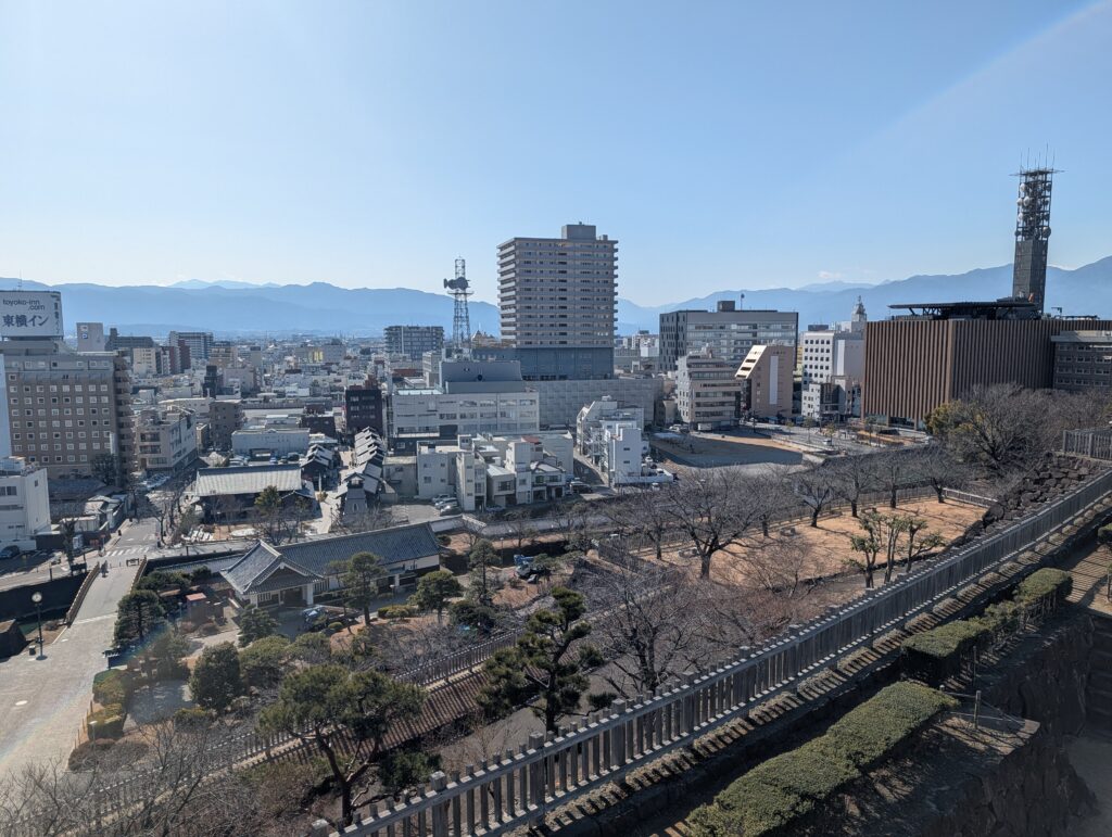 甲府駅と甲府城の南側に位置するので、北側の部屋であれば甲府城がよく見えるし、南側の部屋であれば富士山が見える。周辺に高層ビルや高層マンションが立ち並ぶので、北側の部屋で眺望を求めるのであれば、15階以上が良さそうだ。